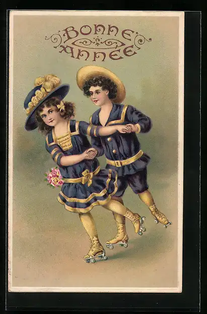 Präge-AK Ein Paar auf Rollschuhen