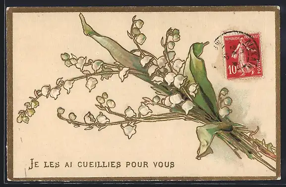 Präge-AK Ein Strauss blühender Maiglöckchen