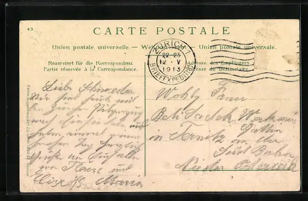 alte Ansichtskarte, gelaufen 1913, guter Zustand