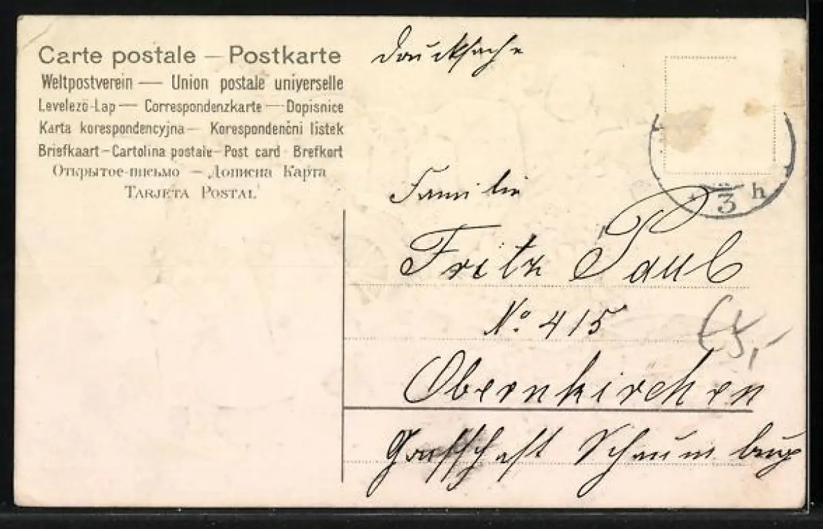alte Ansichtskarte, gelaufen, Briefmarke entfernt, guter Zustand