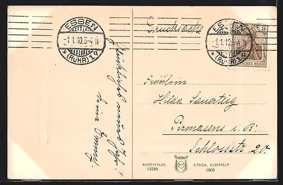 alte Ansichtskarte, gelaufen 1910, Stempelspur, Albumspuren, guter Zustand