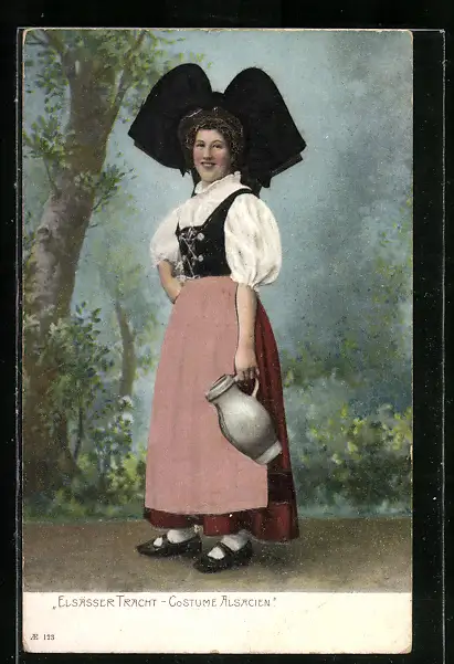 Präge-AK Frau in elsass-lothringischer Tracht mit Krug