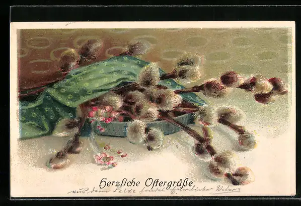 Präge-AK Fröhliche Ostern mit Weidenkätzchen