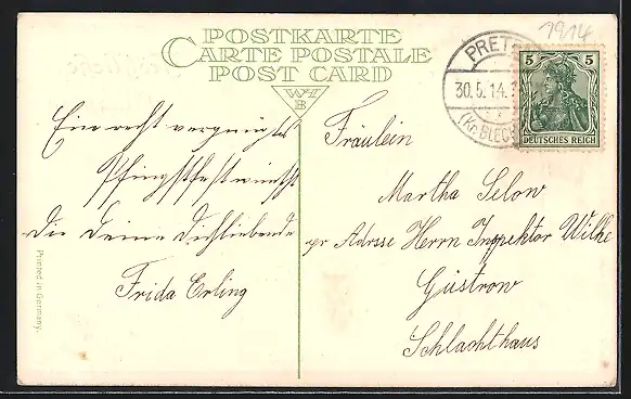 alte Ansichtskarte, gelaufen 1914, guter Zustand