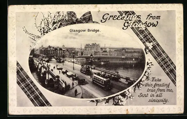Präge-AK Glasgow, Ortsansicht mit Strassenbahn