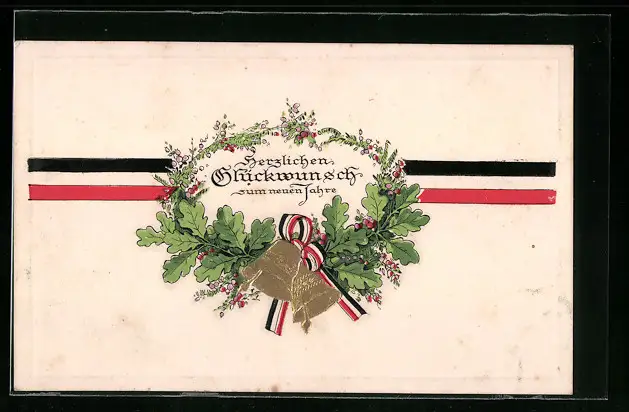 Präge-AK Glückwunsch zum neuen Jahre, Eichenlaubkranz