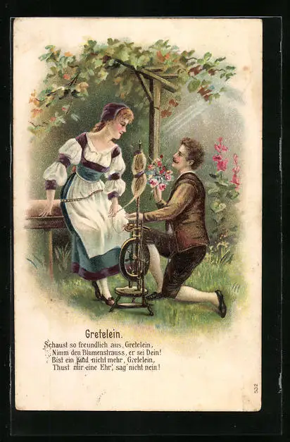 Präge-AK Gretelein am Spinnrad