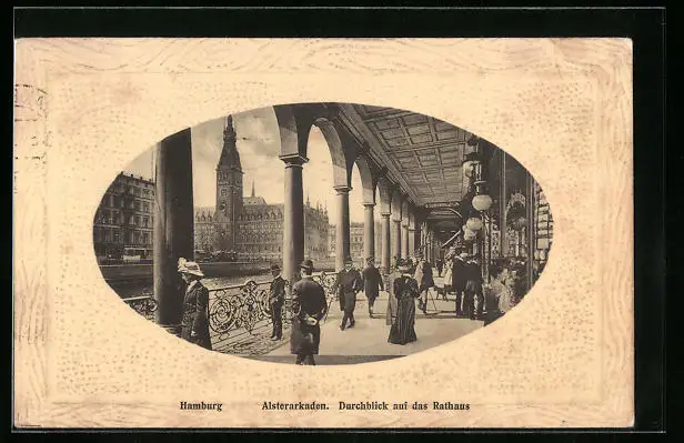 Präge-AK Hamburg, Alsterarkaden mit Durchblick auf das Rathaus
