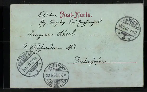alte Ansichtskarte, gelaufen 1901, Albumspuren, guter Zustand