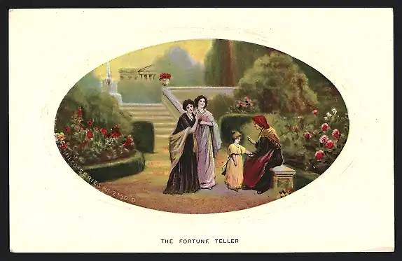 Präge-AK Hellseherin liest die Hand eines Mädchens