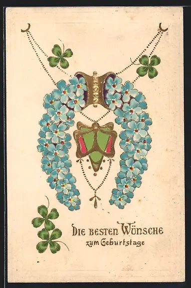 Präge-AK Hufeisen aus Vergissmeinnicht und Glücksklee