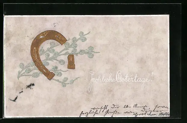 Präge-AK Hufeisen mit Kätzchenzweigen, Ostergruss