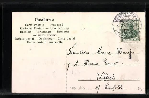 alte Ansichtskarte, gelaufen 1907, Stempelspur, guter Zustand