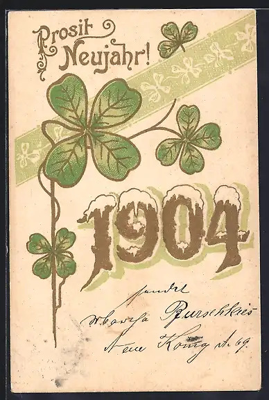 Präge-AK Jahreszahl 1904 mit Kleeblättern, Prosit Neujahr