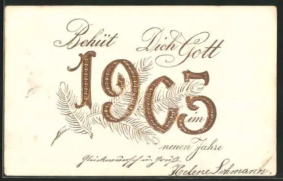 Präge-AK Jahreszahl mit Tannenzweig, Neujahrsgruss 1905