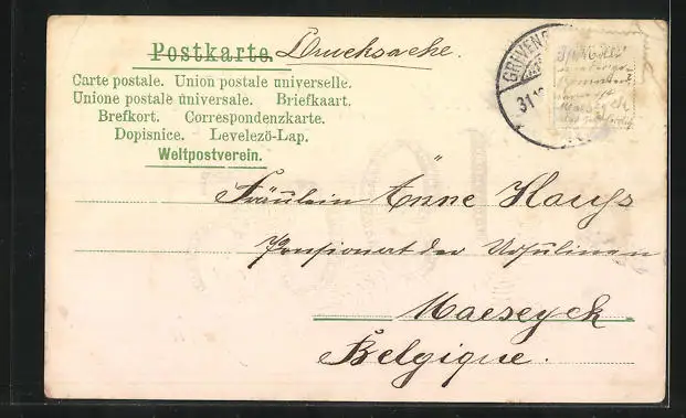 alte Ansichtskarte, gelaufen, rückseitig Klebe- und Papierreste, rückseitig Oberflächenschaden, Eckknicke li. oben u. re., Stempelspur, guter Zustand