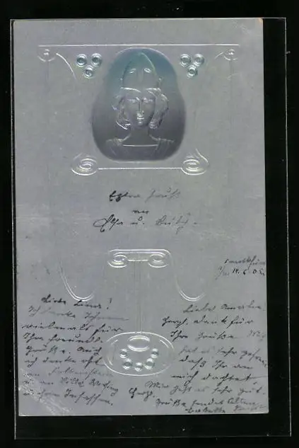Präge-AK Jünglingsportrait, Ornamente, Jugendstil