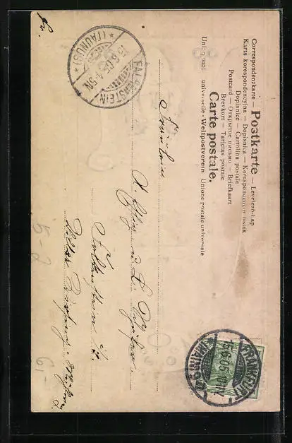 alte Ansichtskarte, gelaufen 1905, Eckknicke unten li., guter Zustand