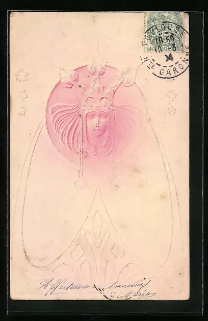 Präge-AK Junge Frau Krone, Jugendstil