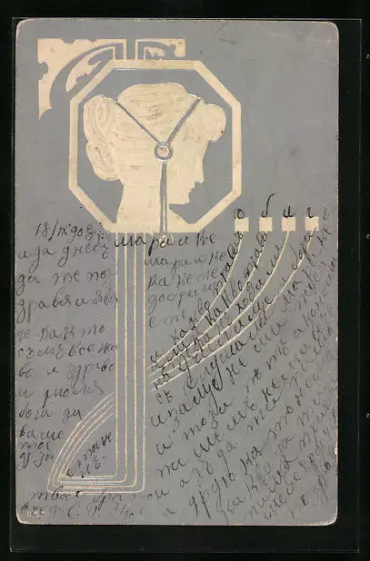 Präge-AK Junge Frau mit Kopfschmuck, Jugendstil