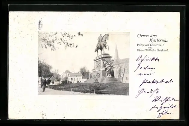 Präge-AK Karlsruhe, Kaiserplatz, Kaiser Wilhelm Denkmal