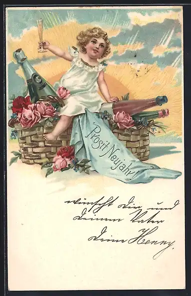 Präge-AK Kind mit Sektkorb stösst zu Neujahr an