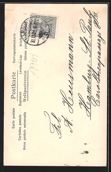 alte Ansichtskarte, gelaufen 1901, guter Zustand