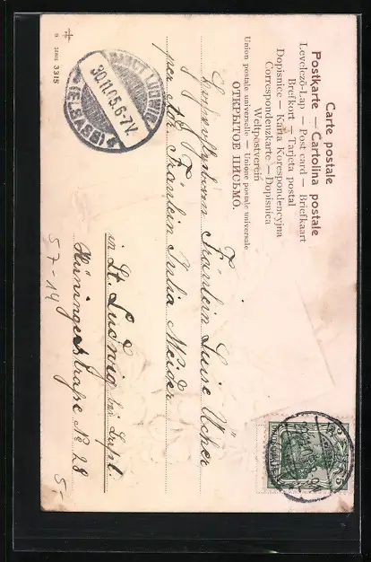 alte Ansichtskarte, gelaufen 1905, guter Zustand