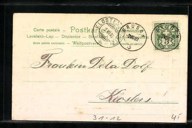 alte Ansichtskarte, gelaufen 1902, guter Zustand