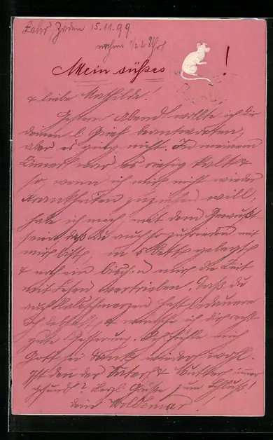 Präge-AK Kleine weisse Maus in der oberen Bildecke