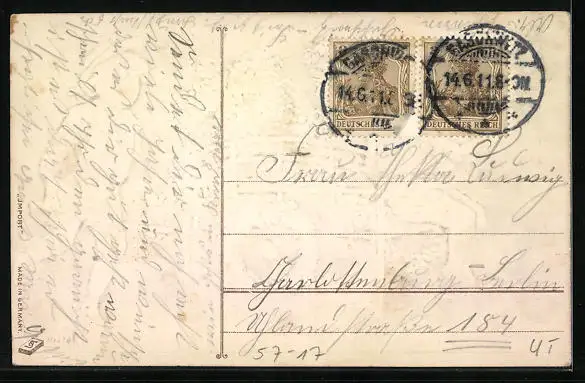 alte Ansichtskarte, gelaufen 1911, Eckknick re. unten, guter Zustand
