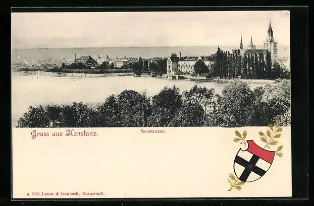 Präge-AK Konstanz, Partie an der Seestrasse, Wappen