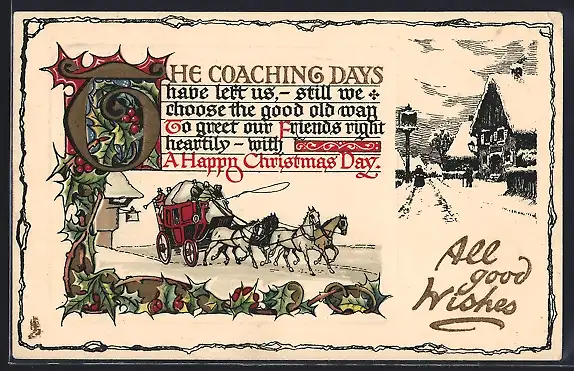 Präge-AK Landschaft mit Postkutsche, Strasse im Winter, Weihnachtsgruss