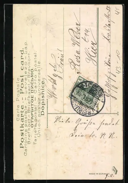 alte Ansichtskarte, gelaufen 1908, guter Zustand