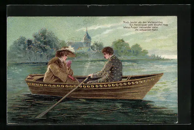 Präge-AK Liebespaar bei Ruderpartie