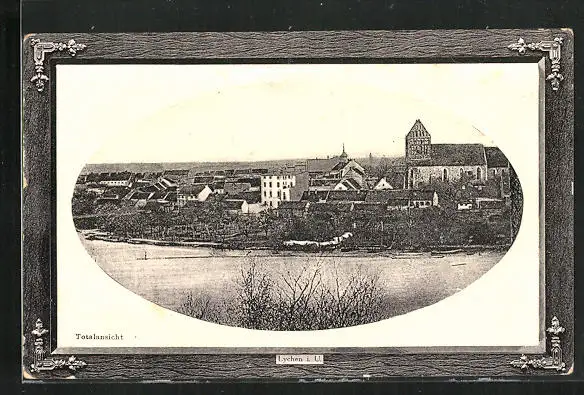 Präge-AK Lychen i. U., Totalansicht im Passepartoutrahmen