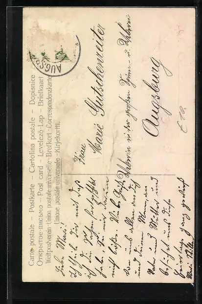 alte Ansichtskarte, gelaufen, Briefmarke entfernt, rückseitig Oberflächenschaden, Einriss links mittig, guter Zustand