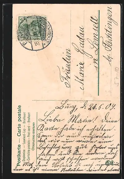 alte Ansichtskarte, gelaufen 1909, guter Zustand