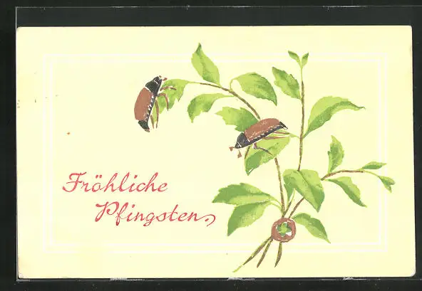 Präge-AK Maikäfer klettern auf einen kleinen Ast hoch