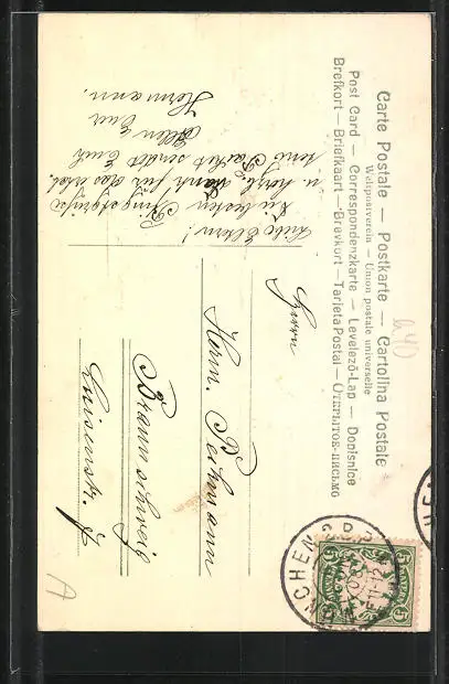 alte Ansichtskarte, gelaufen 1908, Stempelspur, sonst guter Zustand