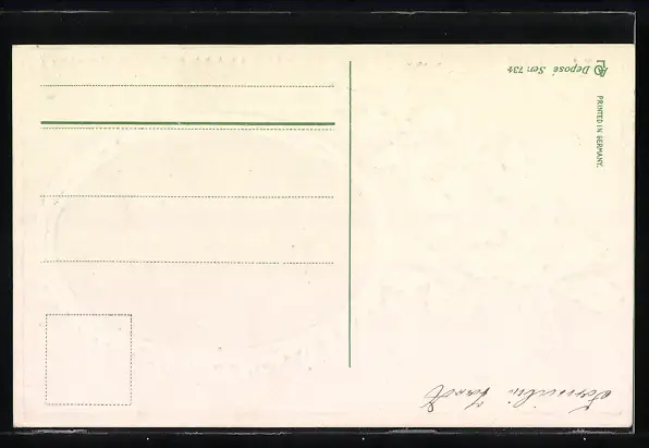Personenbezogene Daten auf der Rückseite der Karte wurden durch blauen Textmarker unkenntlich gemacht. Die blauen Stellen sind auf die Vorderseite durchgeweicht und wirken sich negativ auf das Postkartenfoto aus