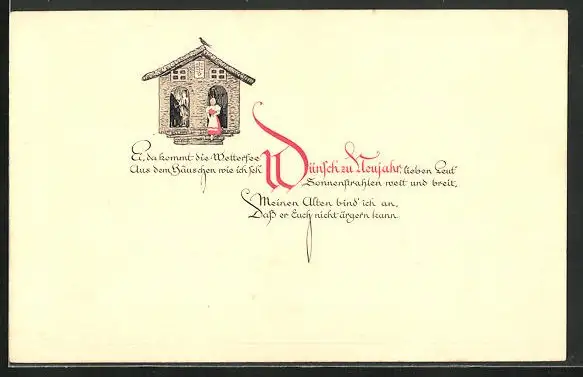 Präge-AK Meteorologie, die Wetterfee in ihrem Häuschen