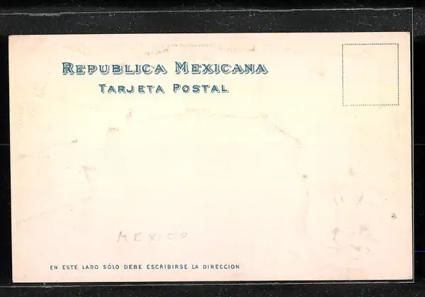 Personenbezogene Daten auf der Rückseite der Karte wurden durch blauen Textmarker unkenntlich gemacht. Die blauen Stellen sind auf die Vorderseite durchgeweicht und wirken sich negativ auf das Postkartenfoto aus