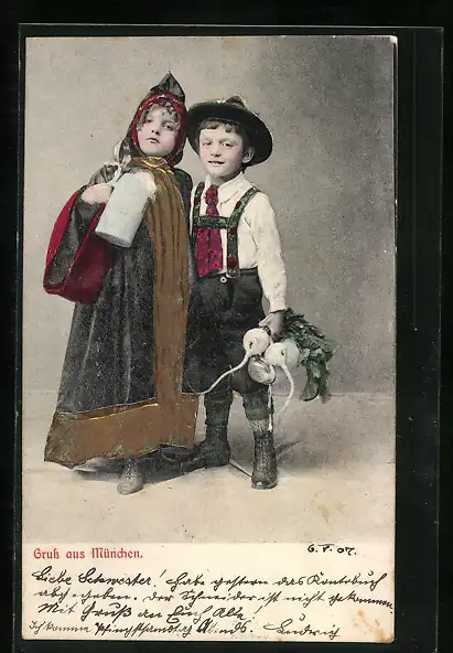 Präge-AK Münchner Kindl mit bayerischem Buben in Tracht