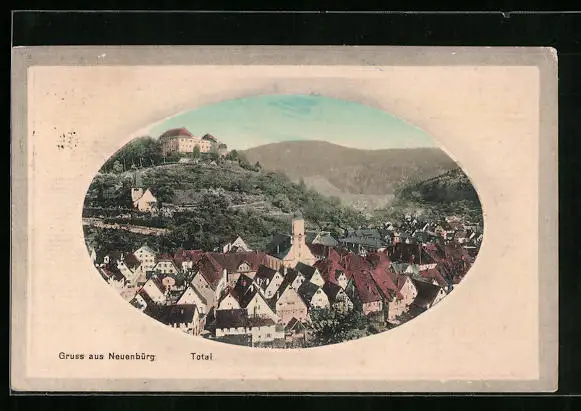 Präge-AK Neuenbürg, Totalansicht im Passepartoutrahmen