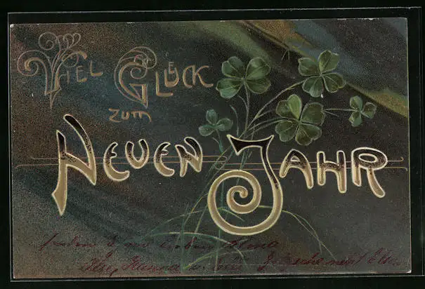 Präge-AK Neujahrsgrüsse mit Kleeblättern
