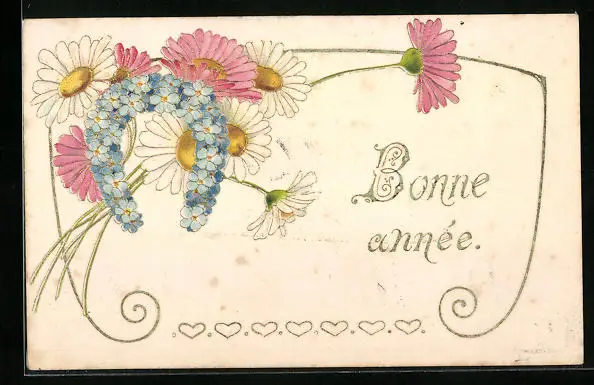 Präge-AK Neujahrsgrüsse mit versch. Frühblühern