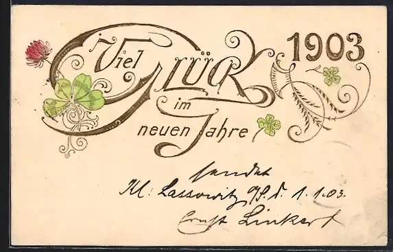 Präge-AK Neujahrsgruss 1903 mit Kleeblättern