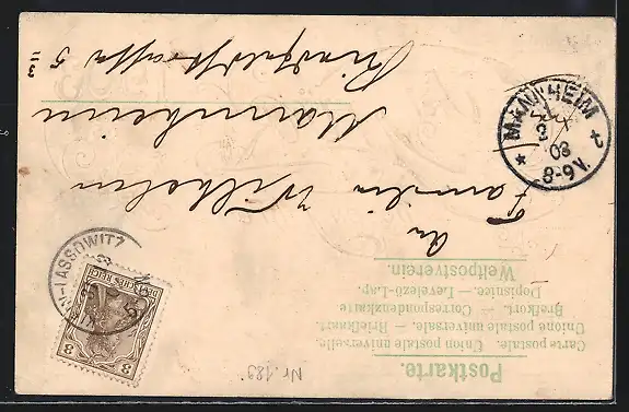 alte Ansichtskarte, gelaufen 1903, Eckknicke re., guter Zustand