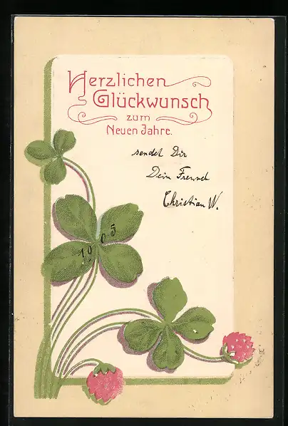 Präge-AK Neujahrsgruss mit Kleeblättern